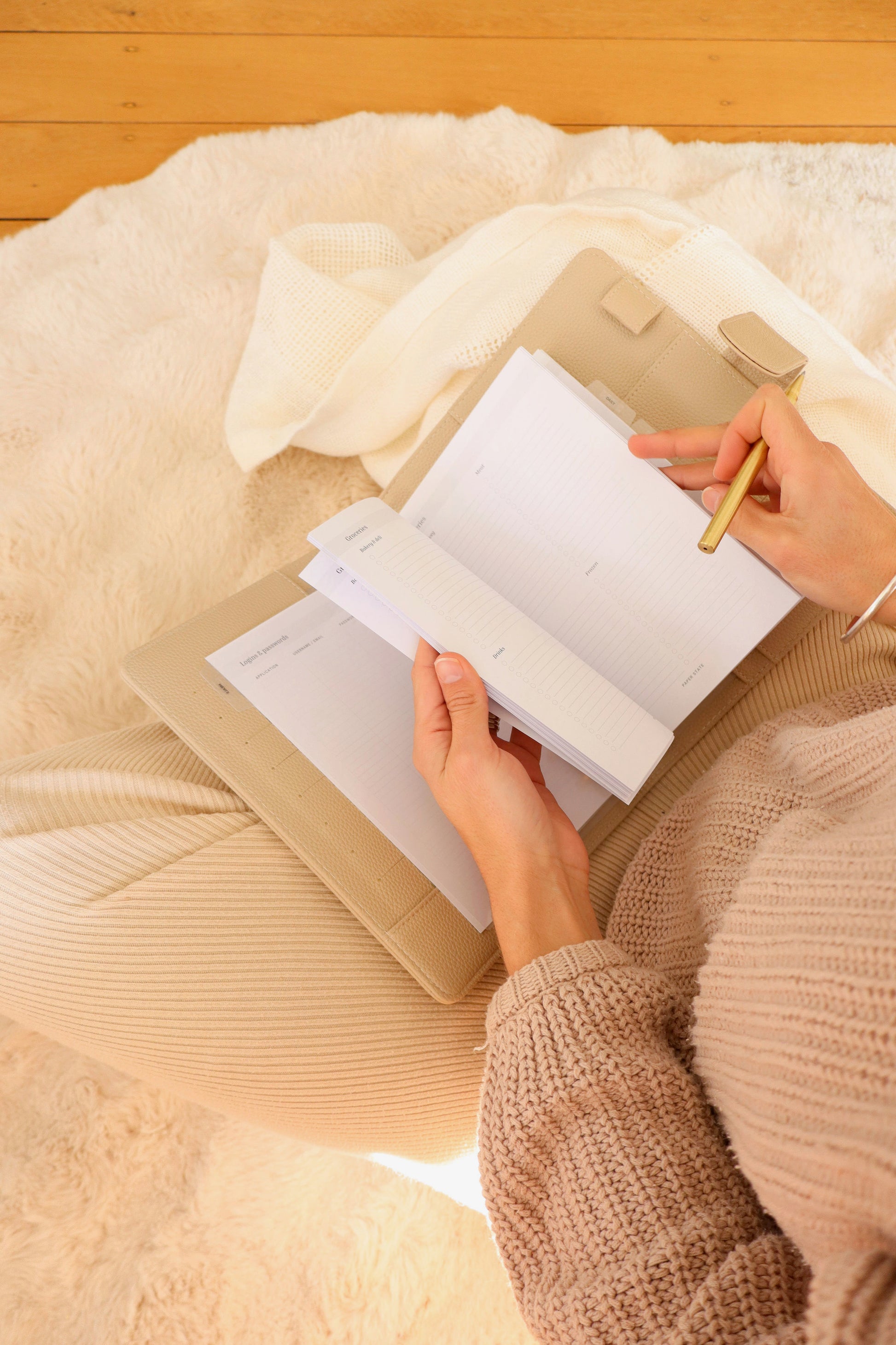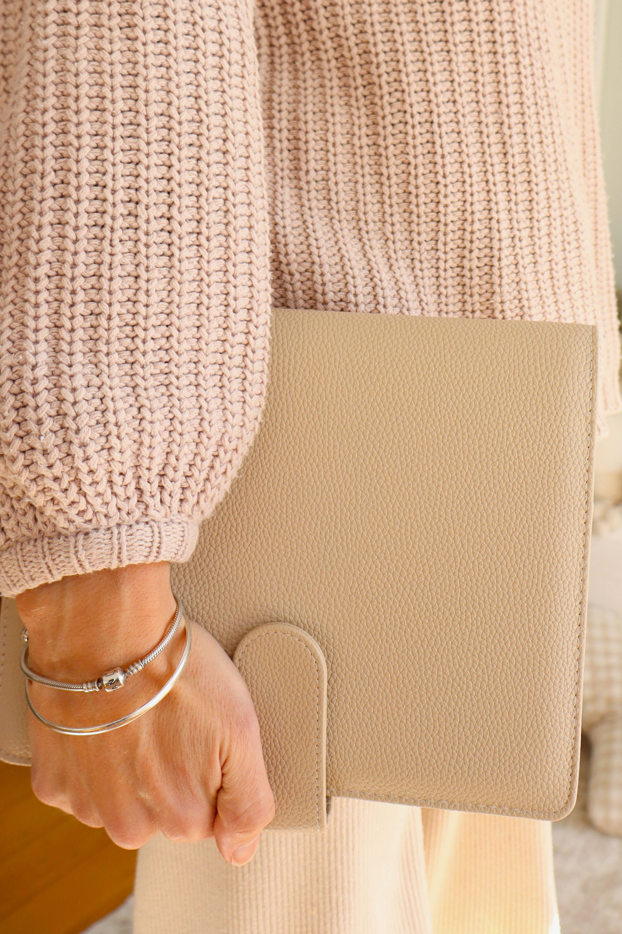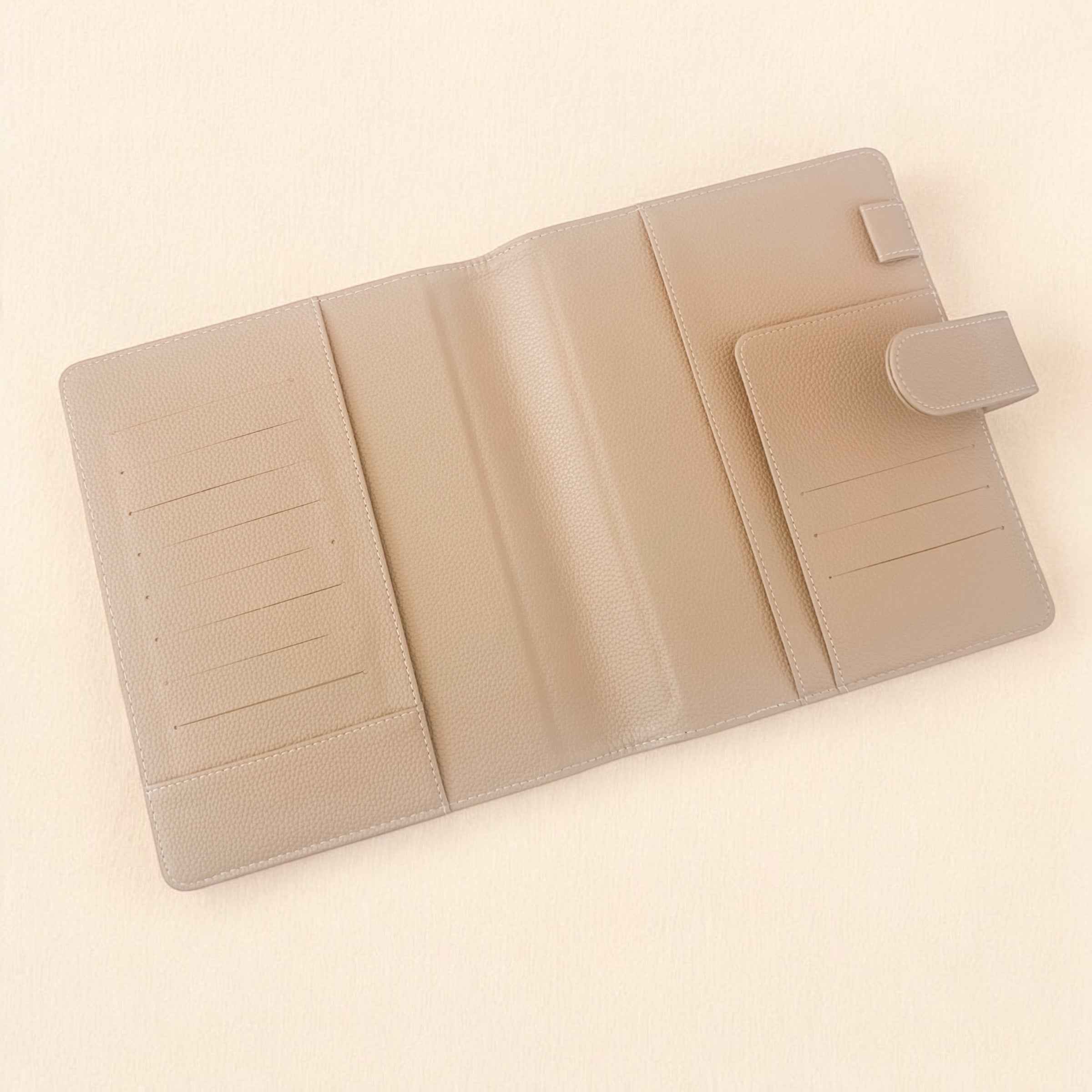 Our beige vegan leather planner cover is a softly structured essential for those who love neutral tones with timeless appeal. Designed for A5 discbound planners, it’s both beautiful and functional – ready to support your goals, your schedule, and your style.
