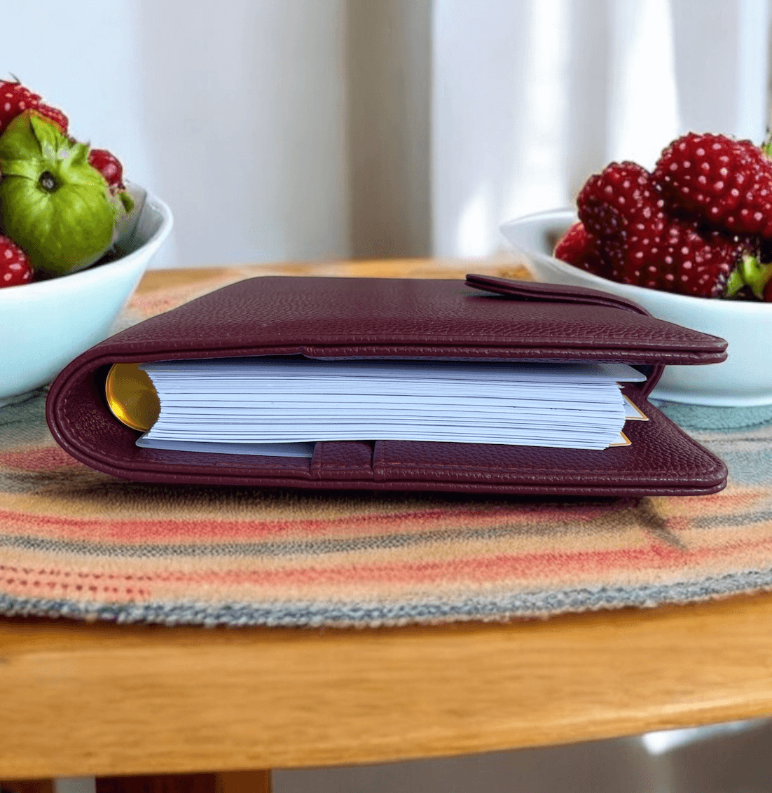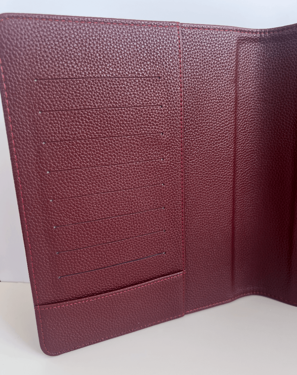 Our berry vegan leather planner cover is designed to wrap your planning system in timeless style and practical function. Made to pair perfectly with our discbound clear plastic clip-on covers, this sleek wrap-around cover is structured, protective, and endlessly chic.