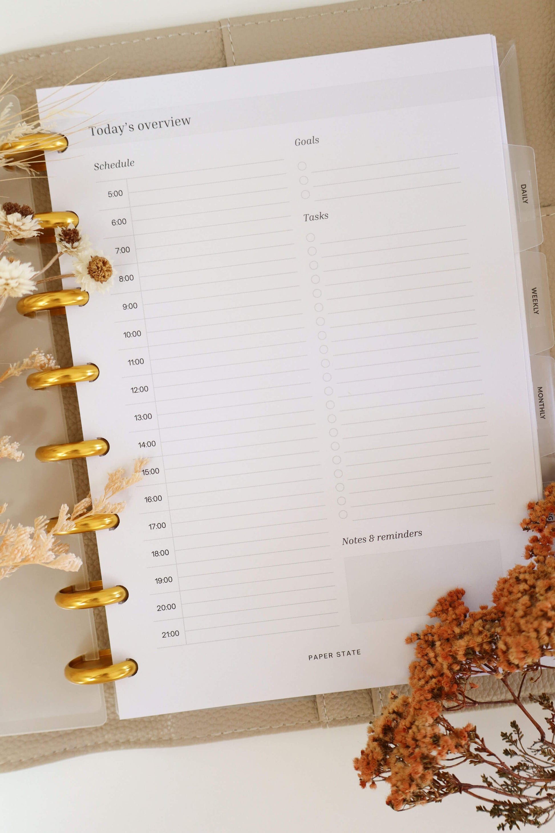 Pre-punched for A5 discbound systems, they integrate seamlessly with any Paper State planner — pairing perfectly with your weekly and monthly inserts for effortless daily planning.