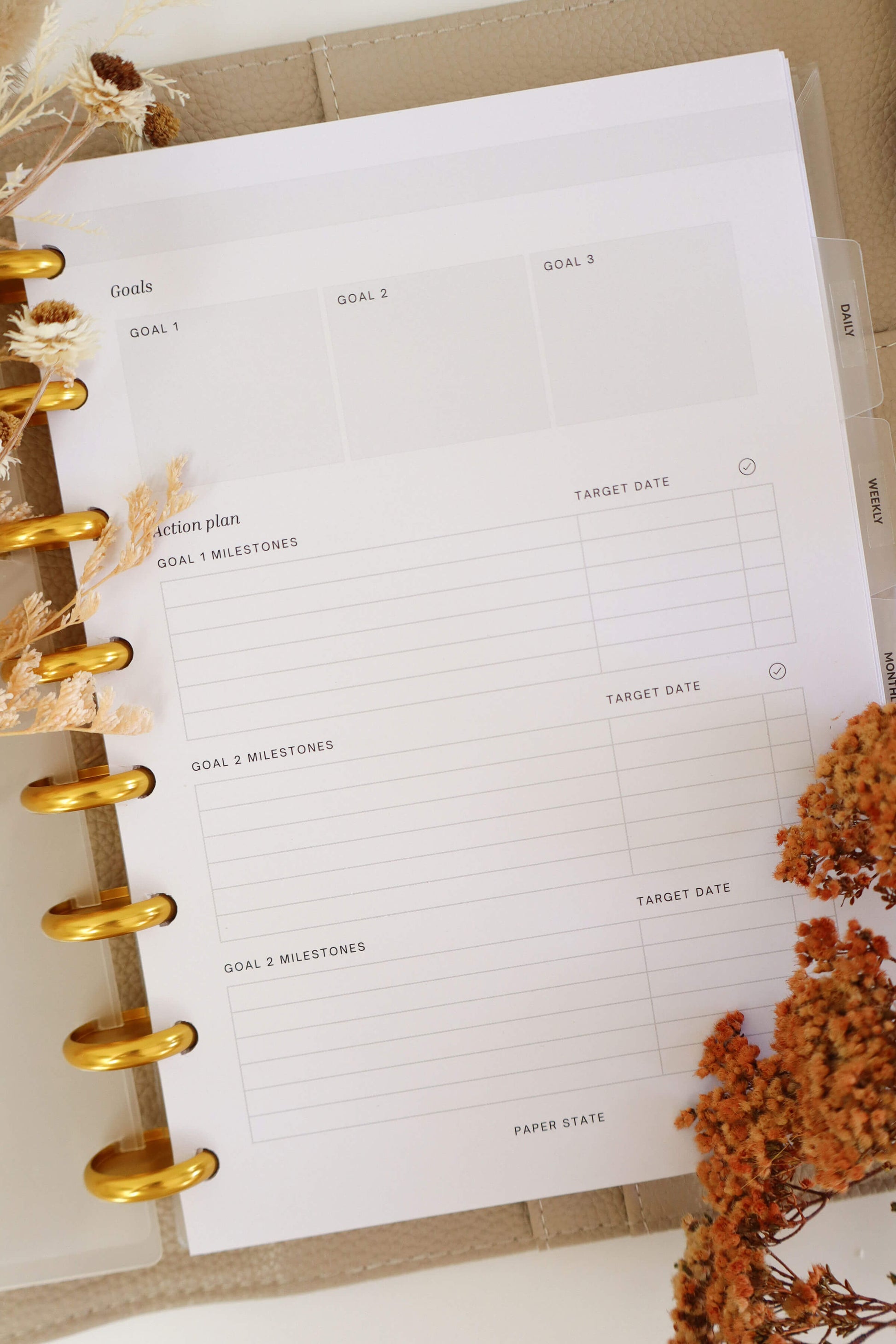 Pre-punched for A5 discbound systems, they fit perfectly into your Paper State planner and pair beautifully with your Monthly and Projects inserts for complete goal alignment.
