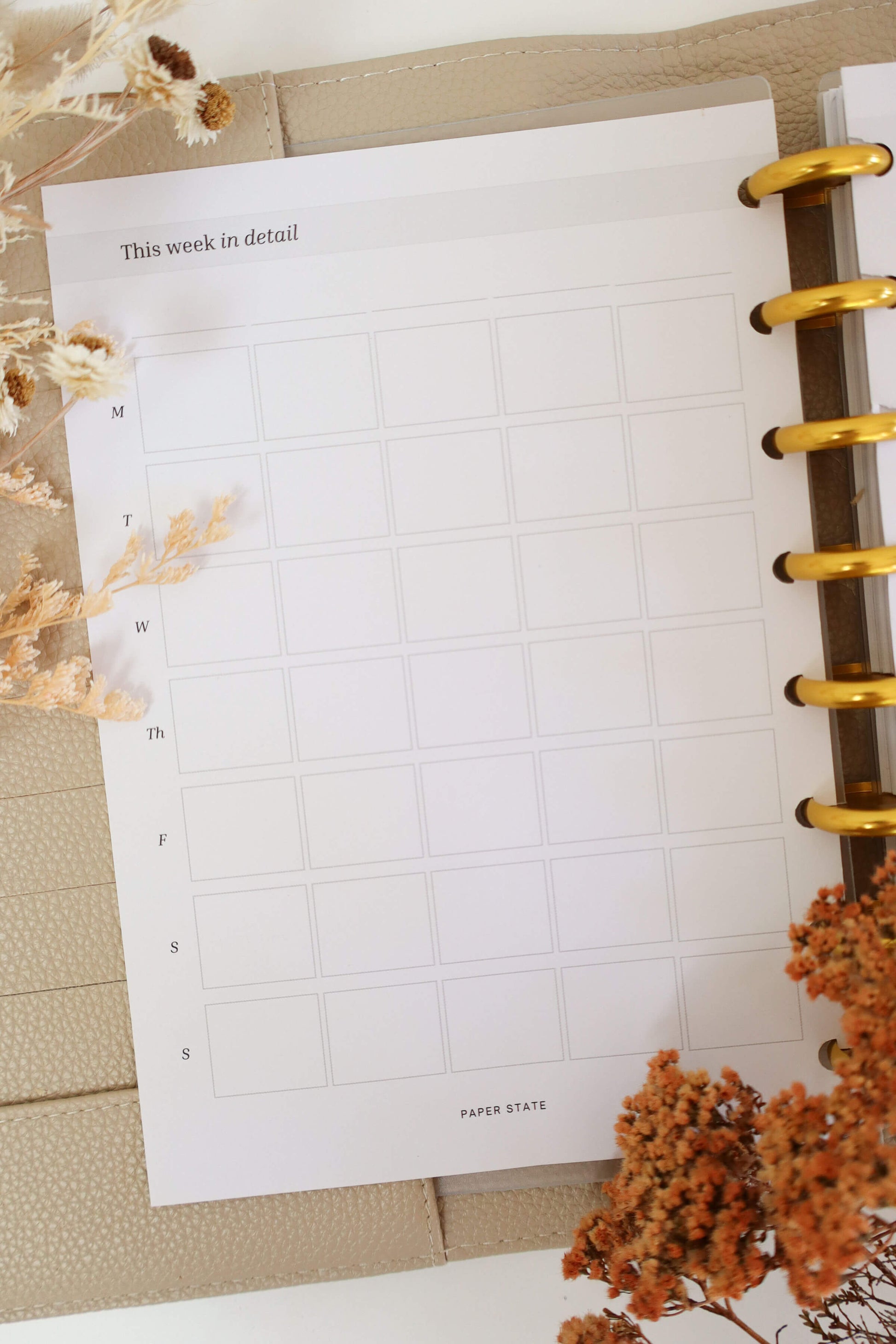 Structure your week with ease. Our 8-week undated inserts include both overview and detailed layouts — perfect for balancing work, home, and everything in between.